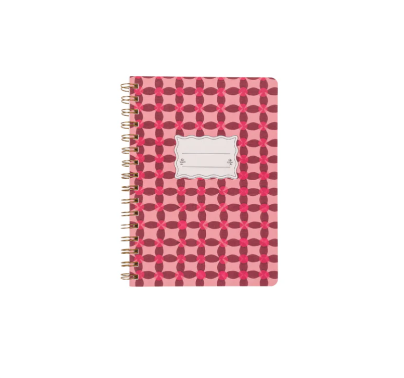 Το Pinwheel Pink Twin-Wire Notebook ξεχωρίζει με το έντονο μοτίβο pinwheel σε αποχρώσεις ροζ και έντονου φούξια, εμπνευσμένο από την κίνηση και τη ζωντάνια των χρωμάτων. Ένας παιχνιδιάρικος σχεδιασμός που δίνει χαρακτήρα σε κάθε σου σημείωση.