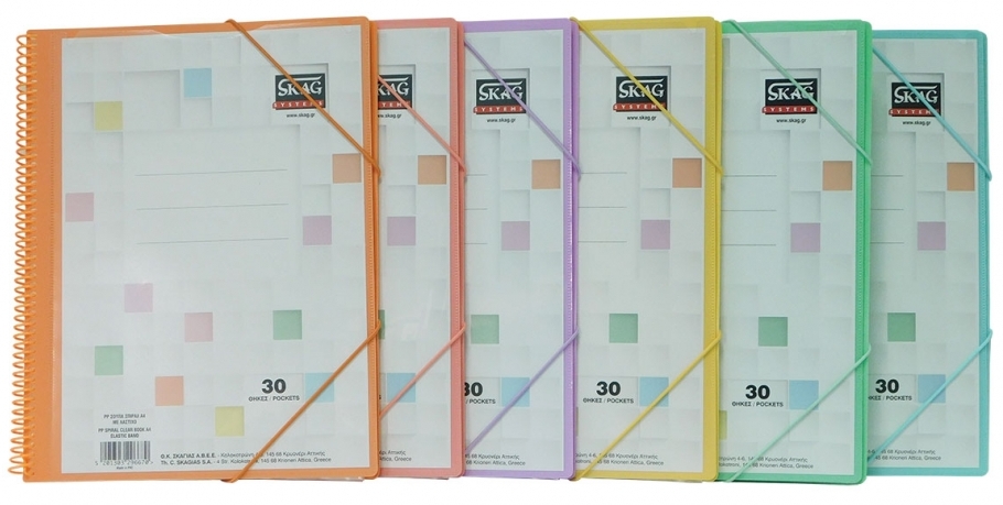 Supple P.P Spiral A4 30 pouches with elastic Various Pastel Colors